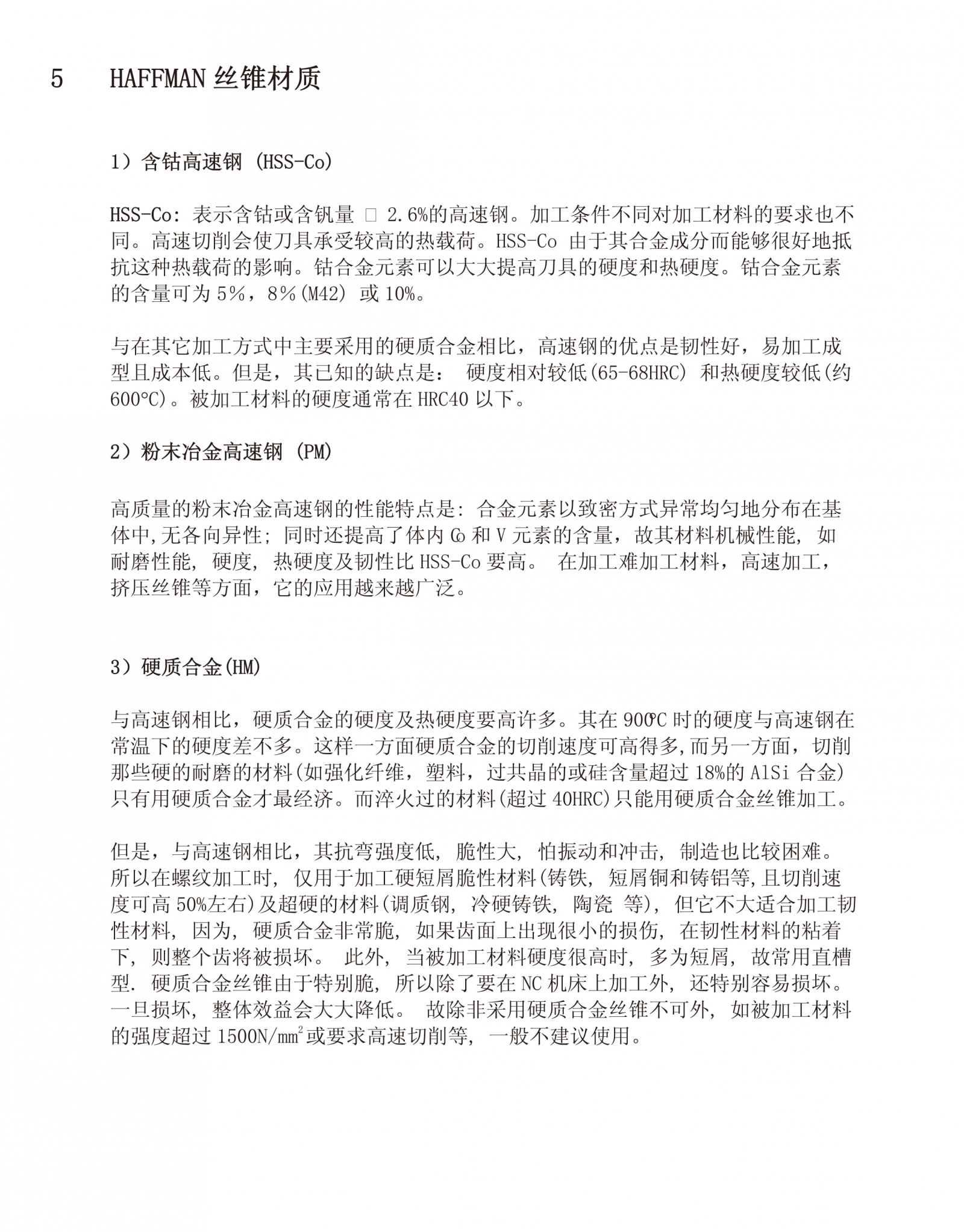 HAFFMAN丝锥材质