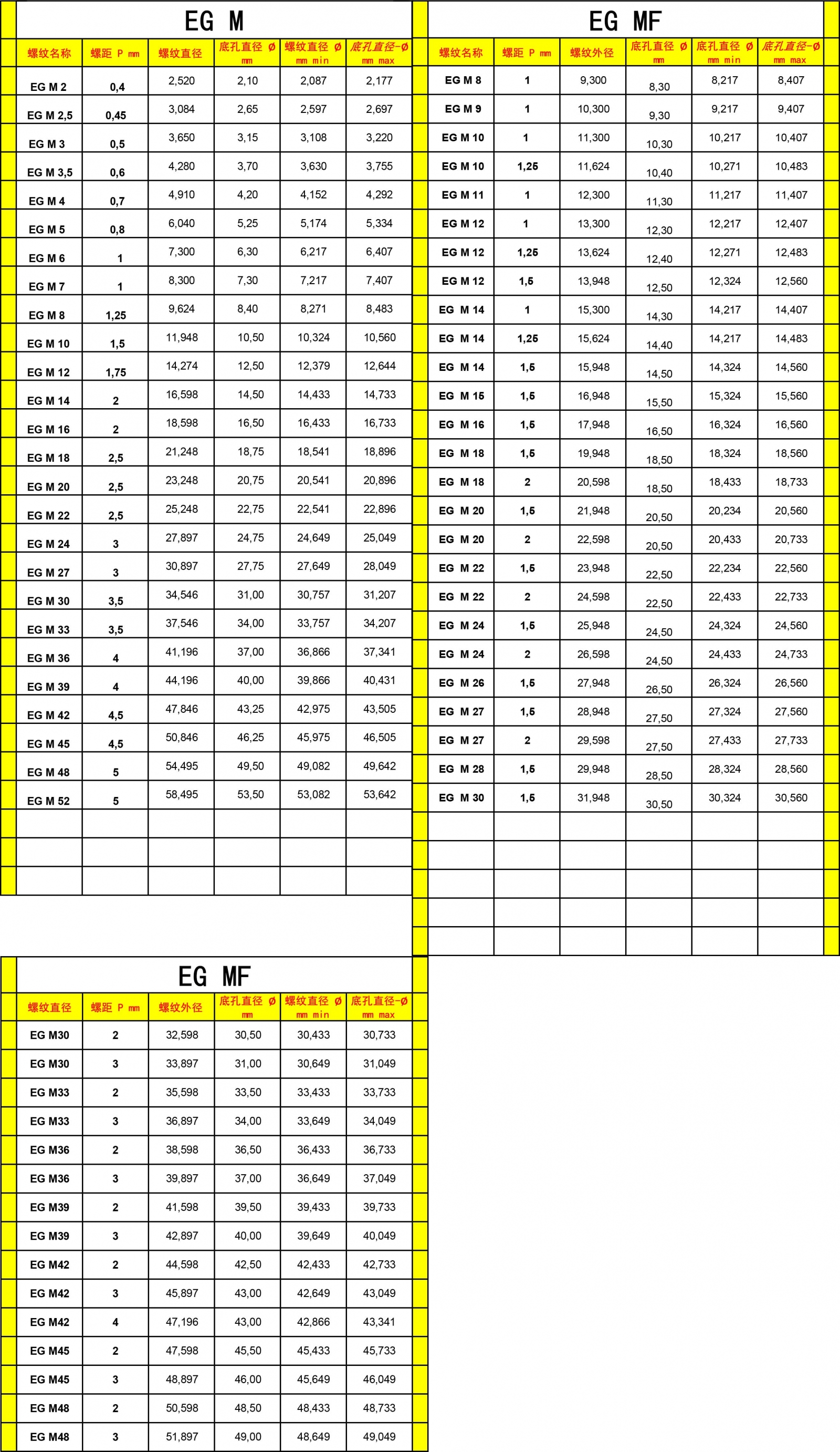 EG M螺纹底孔直径及公差表