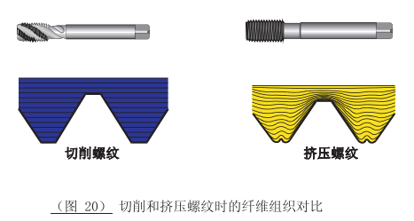 4)丝锥公差:挤压丝锥的公差等级6HX或6GX,这是因为,首先挤压生成的螺纹,决不比挤压丝锥的螺纹部分更大;其次,材料被挤压后有所收缩(挤压螺纹后,挤压丝锥不能再拧进,与切削丝锥不同);最后,挤压时无误切的危险。