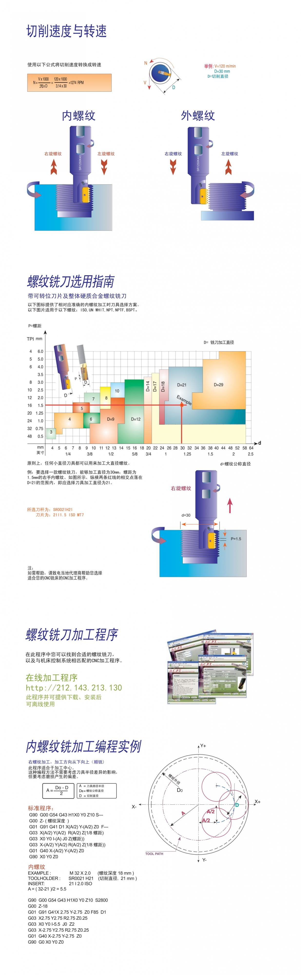 螺旋式螺纹铣刀片是CPT的独家产品。螺旋式螺纹铣刀可实现平稳切削、高进刀量、缩短加工时间。刀具可用于大小加工中心等多种机床。独一无二的带紧固螺钉的夹紧系统可实现高精度夹紧,大大减少了震动,螺纹表面精度高,MT7超细颗粒基体,带TiAN复合涂层(ISOK10-K20),适用于中高速切削及加工各种材料。