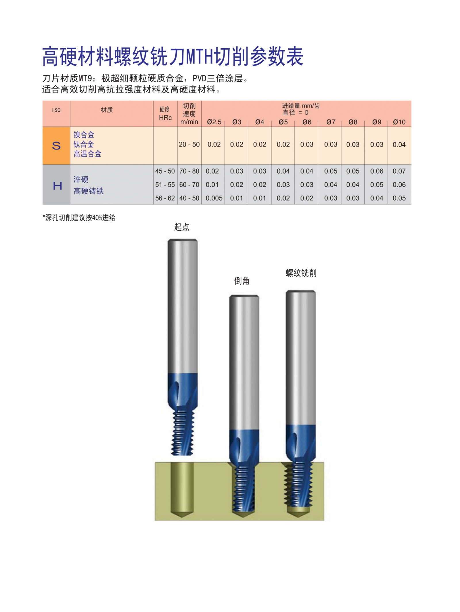 C.P.T.的高硬材料螺纹铣刀MTSH/MTH/DMTH可以加工材料硬度高达62HRC