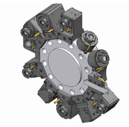 4. 多轴刀座 一个刀座,可装2把、4把甚至更多的刀具,适用于带Y轴的车削中心。