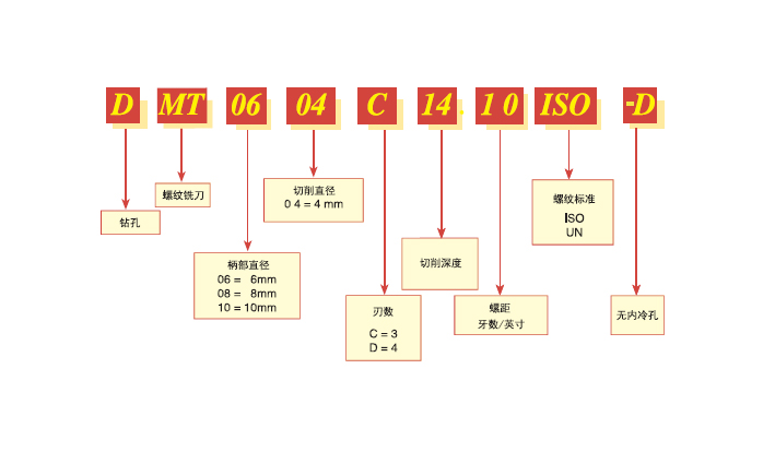 DMT三合一用于加工内螺纹,工序一次加工完成钻孔、铣螺纹、倒角。无需钻孔加工;加工时间短,加工性能卓越;适合盲孔、通孔加工;安全截面牙型加工;同一把适合左右螺纹切削;通用型,适合各种材料加工。