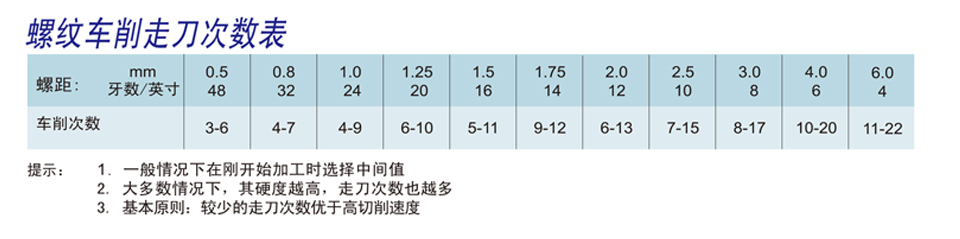 螺纹车削走刀次数表