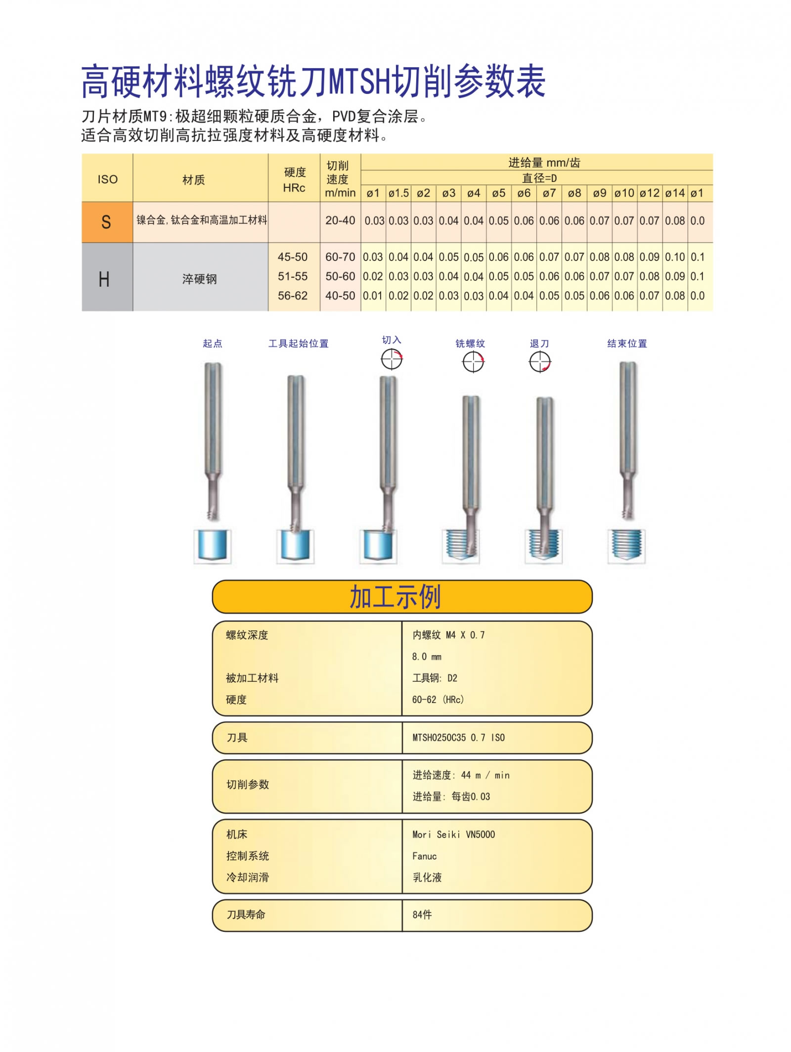 高硬材料螺纹铣刀MTH切削参数表